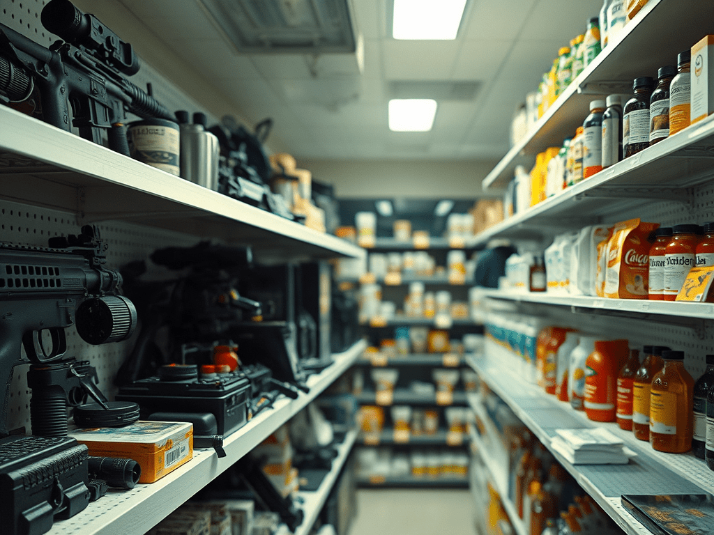 Imagine that your local supermarket were a reflection of USA manufacturing. You would walk in those automatic doors, feel the cool air-conditioning sweep over your skin, and as your eyes scanned the aisles before you, you would see 17% of the shelves stocked with made-in-the-USA, military grade equipment… nearly 1/5th of the shelves would be full of death machines.
