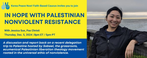 The Korea Peace Now! Faith-based Caucus invites you to join us this first week of advent for an event on Thursday evening, US time.